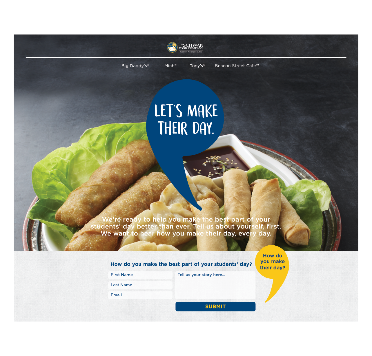 Foodservice directors live to make their students’ days brighter, healthier and happier. And the best way to do that is with Schwan’s Food Service products that are nutritious, delicious and leave students beaming with joy. Lunch is the best part of their day. And it’s all in your hands.